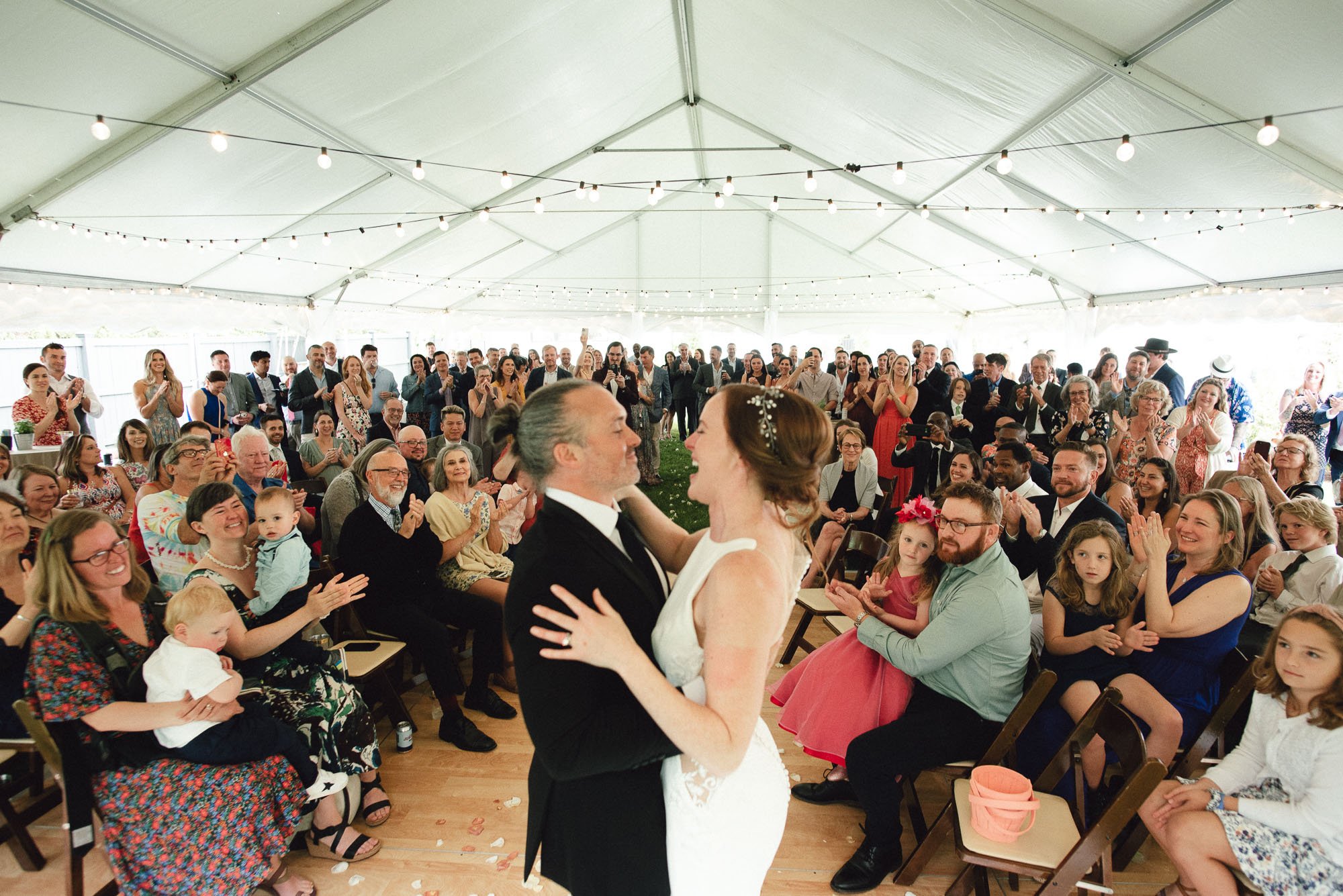 Their ceremony was under a tent in their friend’s backyard. There were a few rows of chairs encircling Cassia and Devin and beyond them, other friends gathered together. It felt like the biggest group hug. Rather than having one officiant, the ceremony was led by a handful of their closest friends and family members who each spoke equally, creating an atmosphere that was unlike any other wedding I had previously attended. Truthfully, I think I’ll be copying them one day. ;)